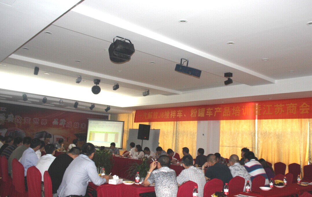 6月5日, 一汽解放J6產(chǎn)品培訓會暨江蘇商會會議在我司成功召開,江蘇商代處經(jīng)理王偉毅、浙江商代處經(jīng)理于廣江、趙龍重工服務部經(jīng)理邵振強以及各解放經(jīng)銷商代表出席此次會議。